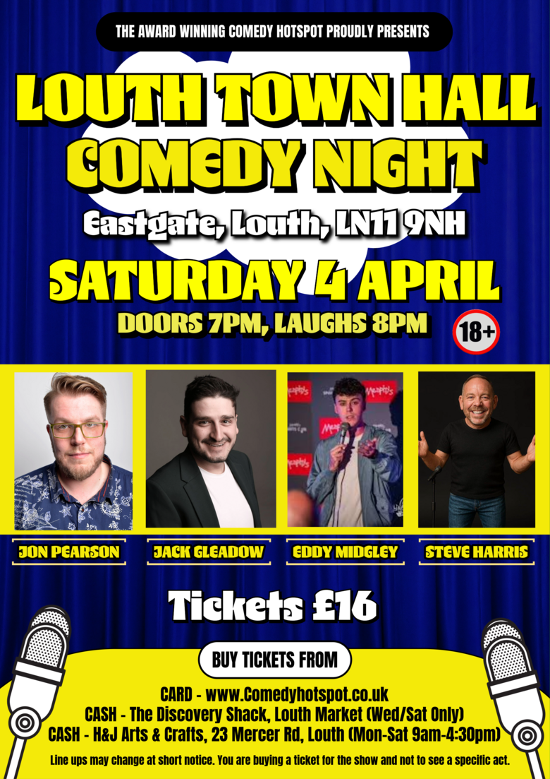 Comedy Hotspot are synonymous with top class comedy shows and I am excited to be bringing shows to our new home, Louth Town Hall. The bigger venue means one thing, bigger shows. You can expect the highest quality line ups comprised of the best comedians on the UK circuit, delivered by an industry award winning professional and hosted by an historic venue in the Town Hall.